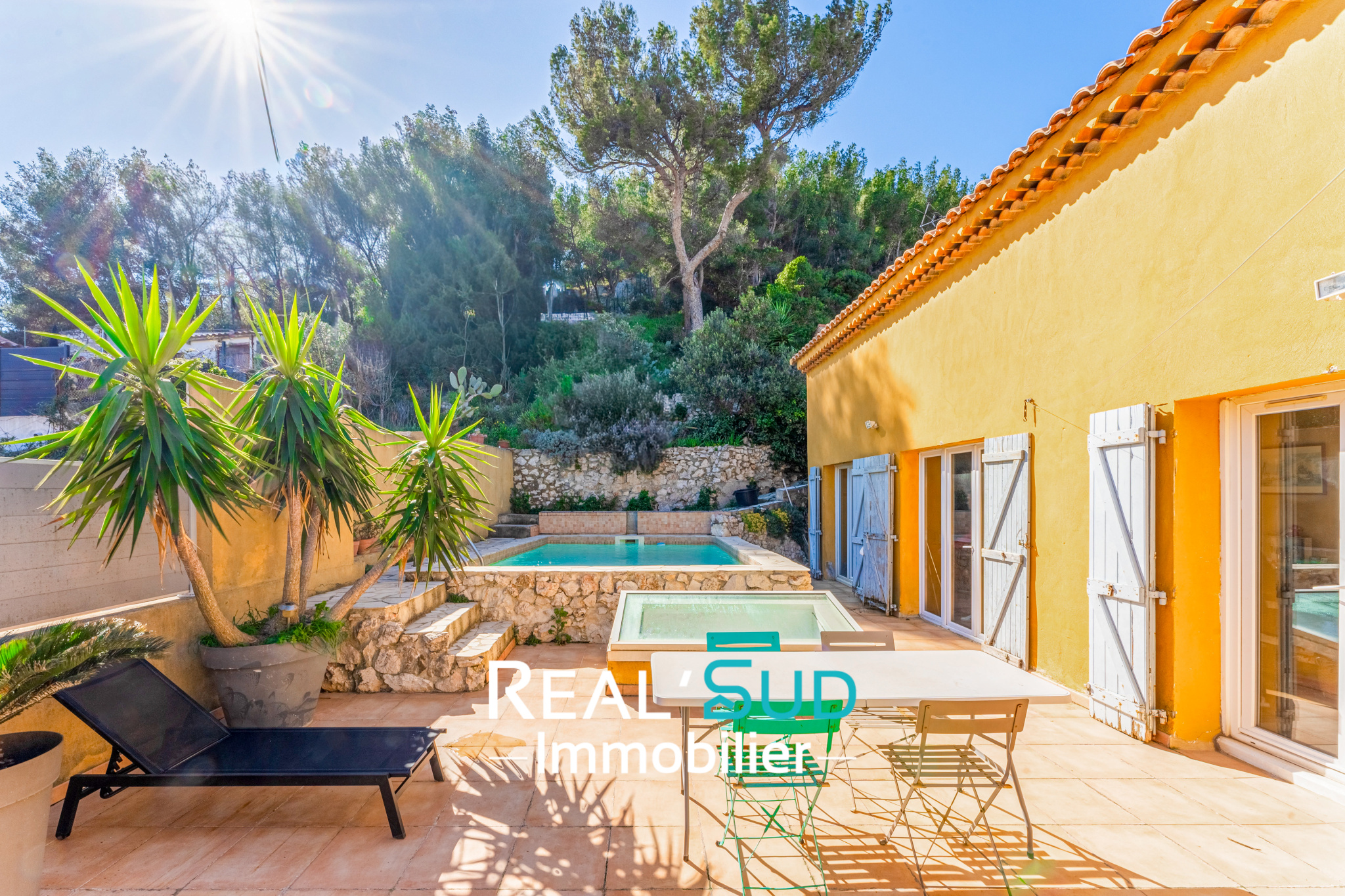 Secteur Mazargues / Morgiou, au calme, belle maison 4 pièces entièrement rénovée avec des prestations contemporaines et climatisation gainée, ainsi qu'un studio indépendant. Ce bien profite d'un agréable espace extérieur autour d'une belle piscine à l'esprit balinais et d'une cuisine d'été. La distribution fonctionnelle dessert en rez-de-chaussée une vaste pièce de vie lumineuse avec de larges baies vitrées, une cuisine spacieuse avec ilôt central, un wc indépendant avec buanderie ainsi qu'une suite parentale et sa salle d'eau. L'étage distribue 2 autres chambres avec rangements ainsi qu'une salle d'eau et wc. Le studio permet de proposer une 4e chambre indépendante avec sa salle d'eau ou un bel espace de travail confortable. Facilité de stationnement pour les véhicules devant la maison et possibilité de garer plusieurs deux roues sur la propriété. VISITE VIRTUELLE IMMERSIVE sur demande. Pour plus de renseignements, contactez-nous au 06.46.10.02.75 et découvrez ce bien en détail sur notre site internet REALSUDIMMOBILIER