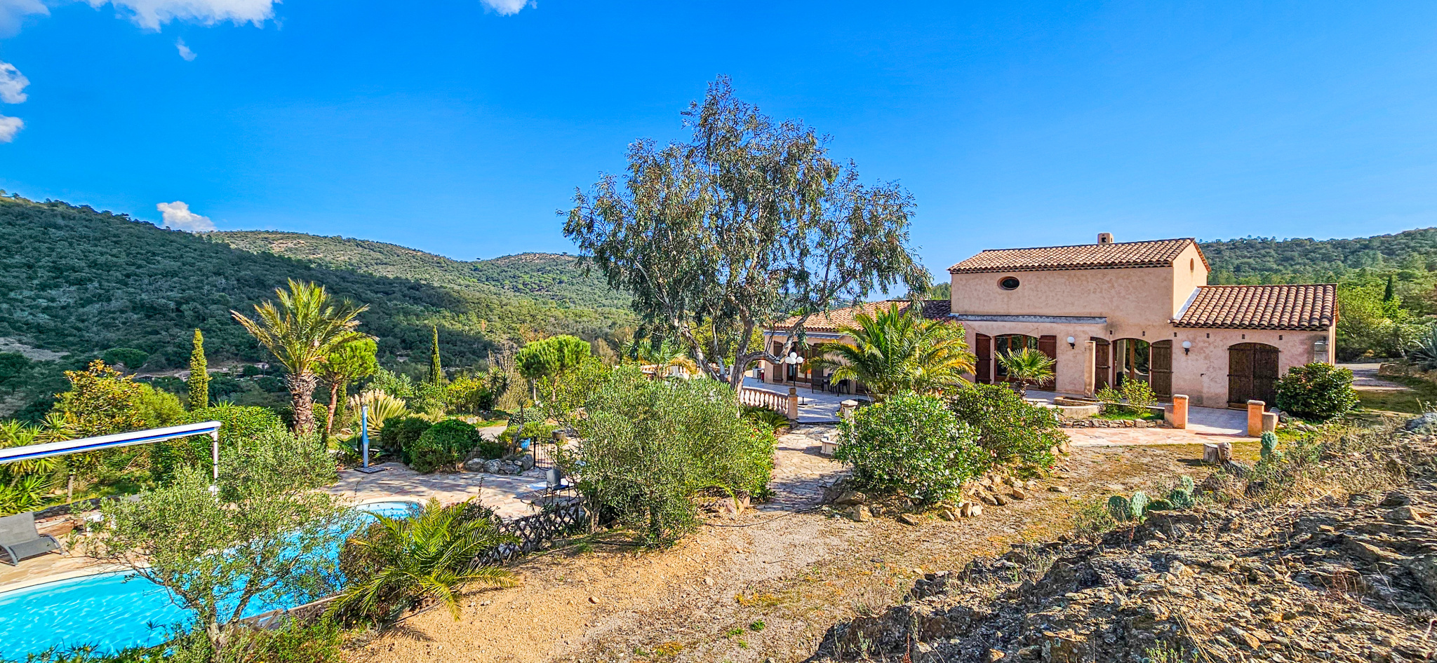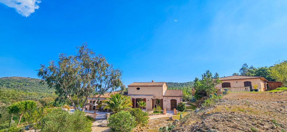 En limite de Sainte Maxime et proche du village du Plan de la Tour, charmante propriété située en position dominante au coeur d'un environnement verdoyant, offrant une superbe vue panoramique sur les collines. Elle est édifiée sur une parcelle de 2 hectares, profitant de beaux espaces paysagers et larges terrasses et bénéficie d'une belle piscine entourée par la végétation méditerranéenne. Elle est composée d'une première villa comprenant 2 habitations avec la possibilité de réunir l'ensemble pour une villa unique ou bien garder l'agencement actuel composé d'une habitation T4 avec beau séjour, plafond cathédral et poutres apparentes, poêle à bois, cuisine semi-ouverte, 3 chambres, une salle de bain et un wc, ainsi qu'une habitation T3 comprenant une pièce à vivre avec cuisine ouverte, 2 chambres, une salle de bain, wc et buanderie. On trouvera également un studio indépendant de 30m² doté d'un espace cuisine, une salle d’eau, ainsi qu'une terrasse attenante, et pour finir une 2e maison indépendante de 3 pièces comprenant une belle pièce de vie avec cuisine ouverte, 2 chambres, une salle d'eau et wc. Cette propriété offre de multiples possibilités pour un projet locatif ou un regroupement familial avec ses nombreux espaces indépendants. L’assainissement de la propriété se fait par fosse septique, et l’alimentation en eau par forage. Le raccordement à l'eau de ville est possible. Très beau potentiel et rendement locatif intéressant Pour plus de renseignements, contactez-nous au O6 46 10 02 75