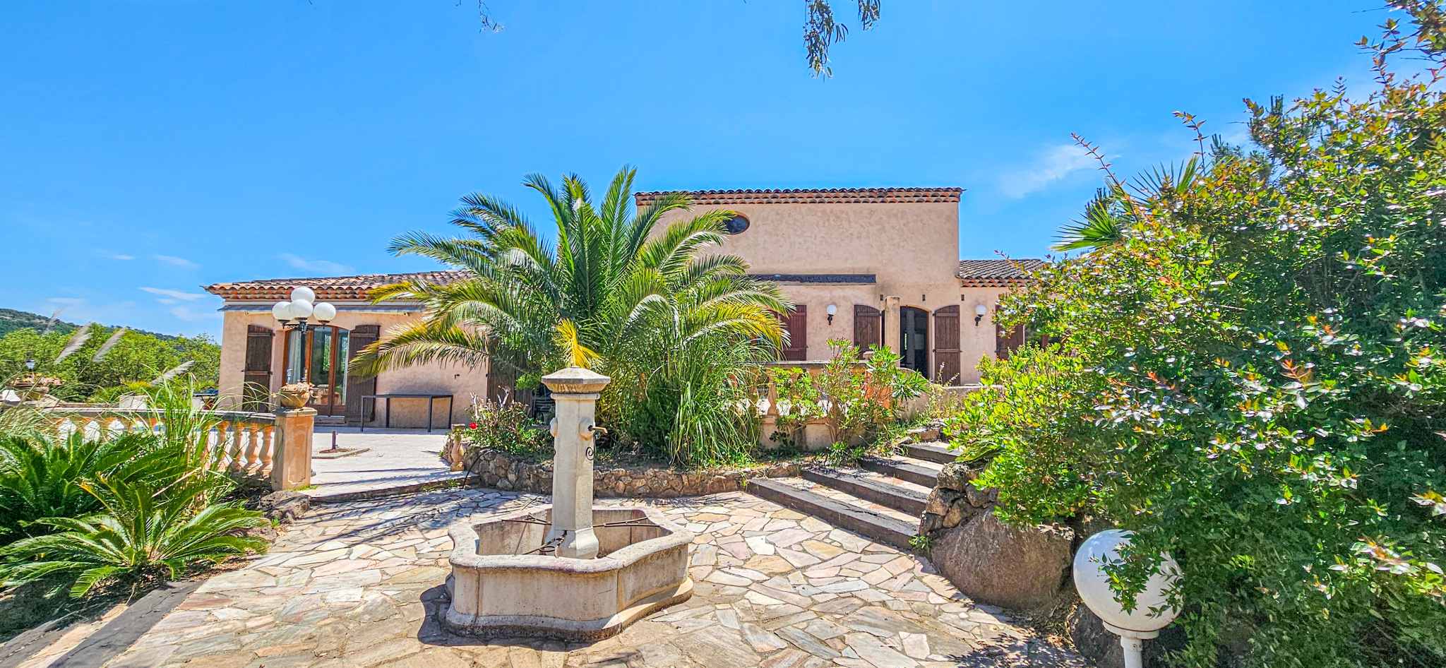 En limite de Sainte Maxime et proche du village du Plan de la Tour, charmante propriété située en position dominante au coeur d'un environnement verdoyant, offrant une superbe vue panoramique sur les collines. Elle est édifiée sur une parcelle de 2 hectares, profitant de beaux espaces paysagers et larges terrasses et bénéficie d'une belle piscine entourée par la végétation méditerranéenne. Elle comprend 2 habitations avec la possibilité de réunir l'ensemble pour une villa unique ou bien garder l'agencement actuel composé d'une habitation T4 avec beau séjour, plafond cathédral et poutres apparentes, poêle à bois, cuisine semi-ouverte, 3 chambres, une salle de bain et un wc, une habitation T3 comprenant une pièce à vivre avec cuisine ouverte, 2 chambres, une salle de bain, wc et buanderie, ainsi qu'un studio indépendant de 30m² doté d'un espace cuisine, une salle d’eau, ainsi qu'une terrasse attenante. Cette propriété offre de multiples possibilités pour un projet locatif ou un regroupement familial avec ses espaces indépendants. L’assainissement de la propriété se fait par fosse septique, et l’alimentation en eau par forage. Le raccordement à l'eau de ville est possible. Très beau potentiel et rendement locatif intéressant Pour plus de renseignements, contactez-nous au O6 46 10 02 75