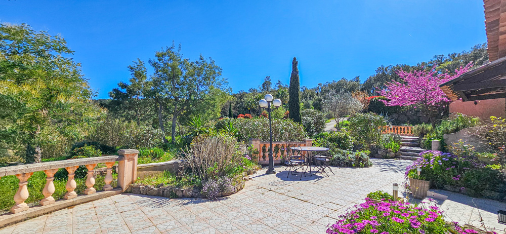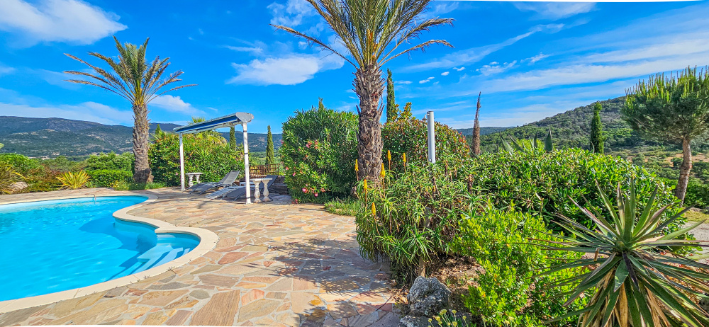 En limite de Sainte Maxime et proche du village du Plan de la Tour, charmante villa située en position dominante au coeur d'une belle propriété et son environnement verdoyant, offrant une superbe vue panoramique sur les collines et le village plantourian Profitant de beaux espaces paysagers, la villa est entourée par de vastes terrasses ainsi qu'une belle piscine au coeur de la végétation méditerrannéenne. La partie principale d'une surface de 75m² comprend une pièce de vie avec cuisine ouverte, 2 chambres dont une de 17m² avec rangements, une salle de bain avec wc, ainsi qu'une buanderie. Le studio indépendant de 30m², dispose d'un bel espace avec cuisine ainsi qu'une salle d'eau, et s'ouvre sur une charmante terrasse. La villa issue d'une division, est mitoyenne d'un coté, l'assainissement se fait par fosse septique et l’alimentation en eau par forage. Le raccordement à l'eau de ville est possible. Pour plus de renseignements, contactez-nous au O6 46 10 02 75